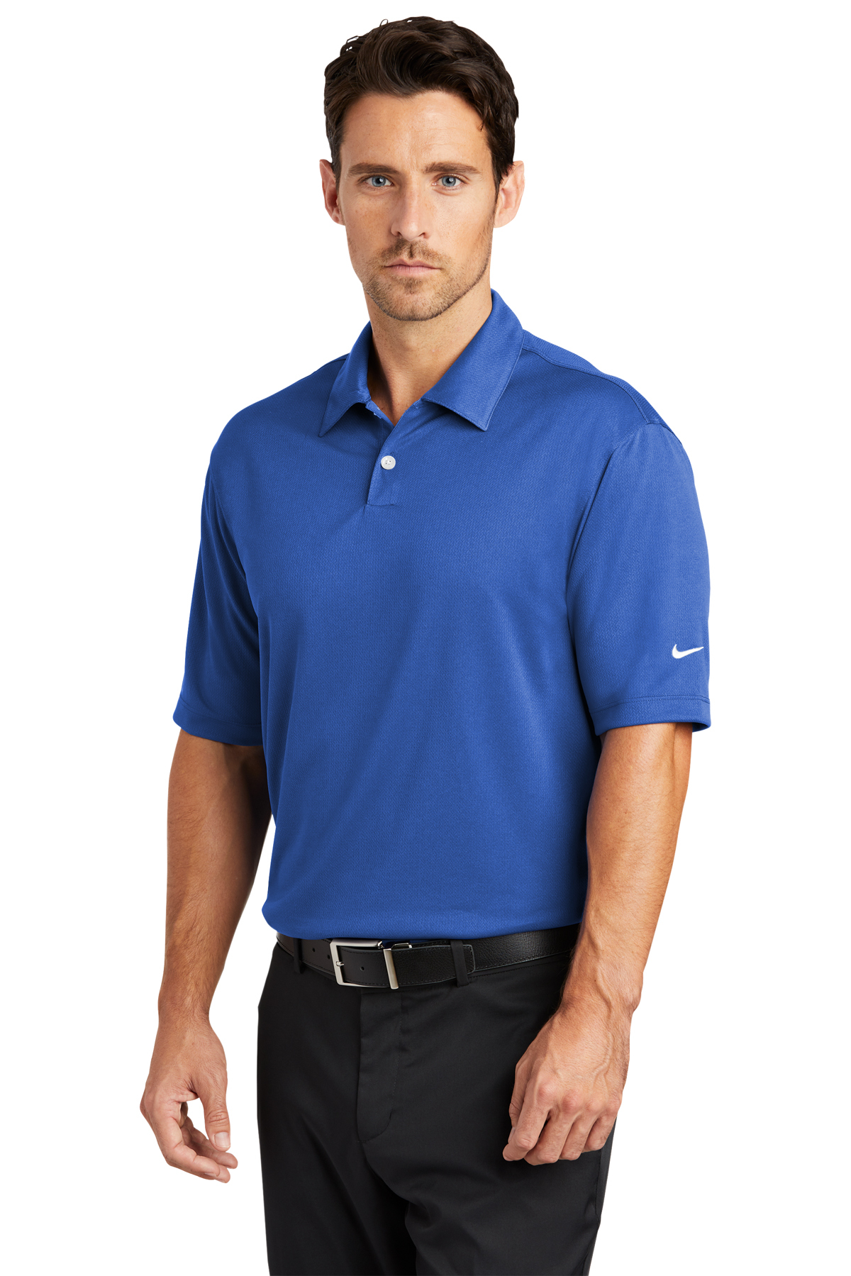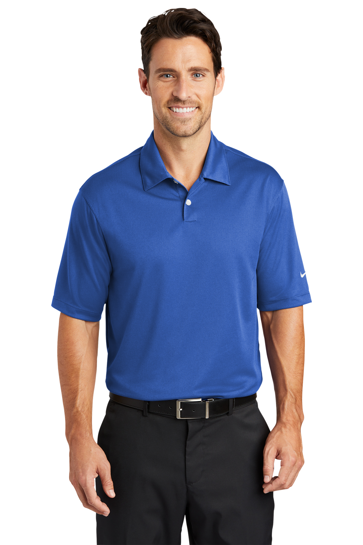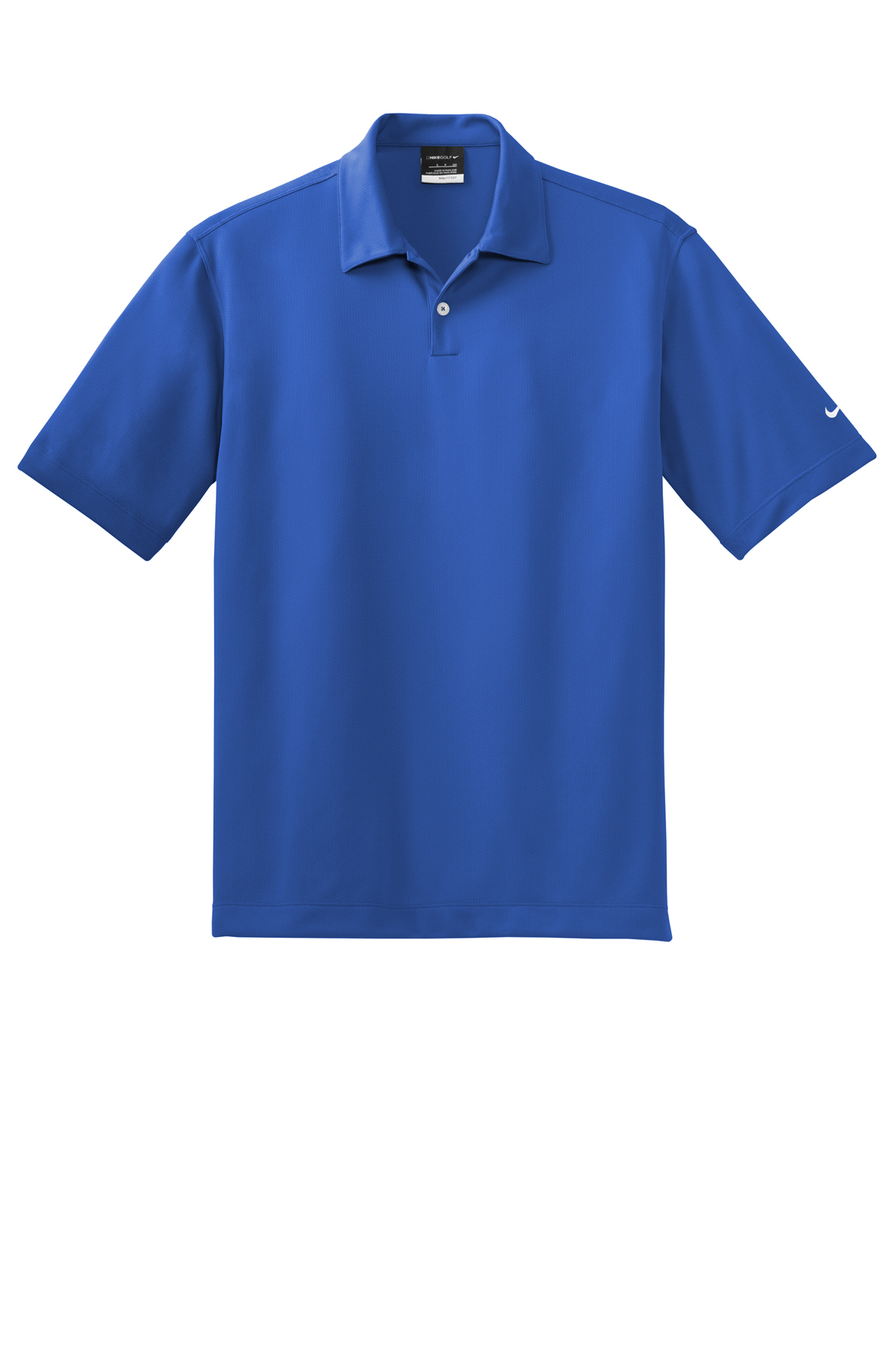 An understated pebble texture meets high-performance moisture -wicking from Dri-FIT fabric in this Nike style. Designed to keep you comfortably dry, features include a self-fabric collar, two-button placket and open hem sleeves. Pearlized buttons are selected to complement the shirt color. The contrast Swoosh design trademark is embroidered on the left sleeve. Made of 3.9-ounce, 100% polyester.